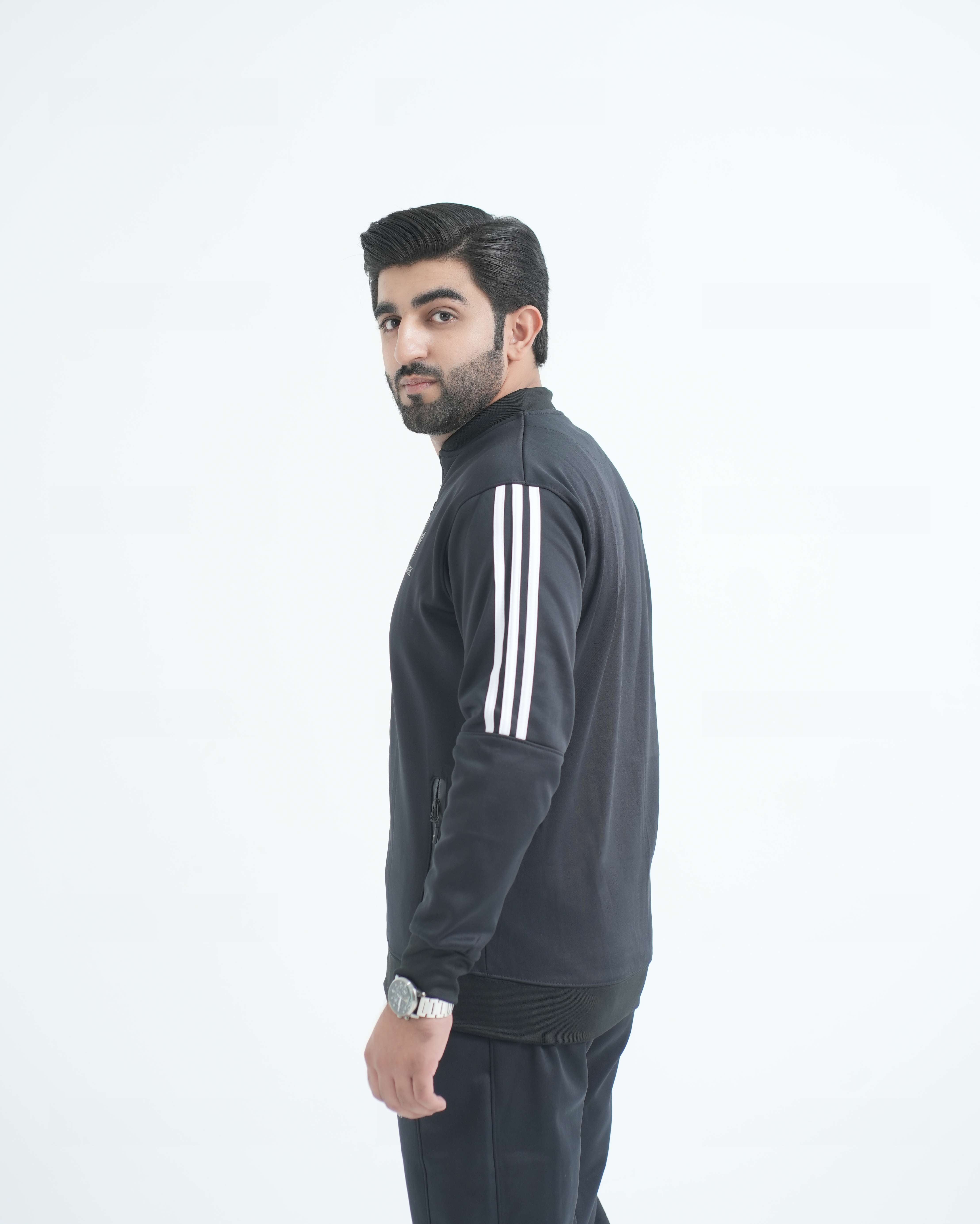 A timeless all-black tracksuit with a strong athletic feel. Sleek, minimal, and perfect for those who like a bold, no-nonsense look. Care Instructions Machine wash in cold water on a gentle cycle. Avoid bleach to preserve fabric and logo quality. Air dry to retain...