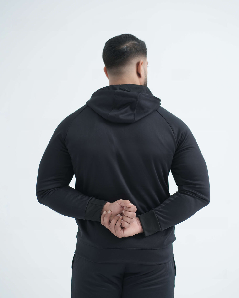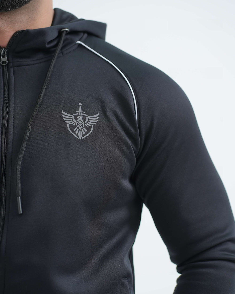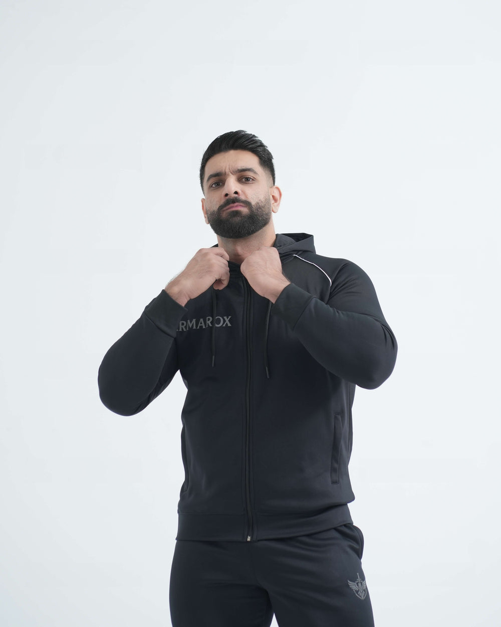 A timeless all-black tracksuit with a strong athletic feel. Sleek, minimal, and perfect for those who like a bold, no-nonsense look.